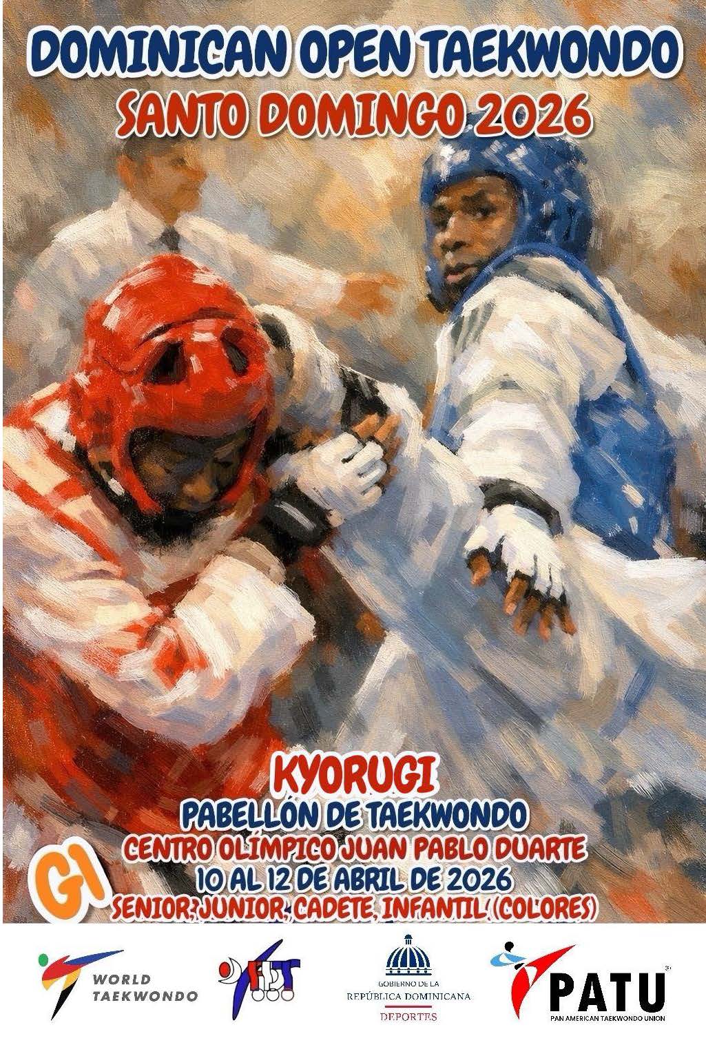 « Todos los Eventos Domincan Open 2026 abril 10 - abril 12 « Qualifying Central American and Caribbea Games 2026 Domincan Open 2026 Host Country: Dominican Republic City: Santo Domingo Last update: 28 january Outline Español Kyorugi Outline English Kyorugi Outline English Poomsae Agregar al calendario Google Calendar iCalendar Outlook 365 Outlook Live Detalles Comienza: abril 10 Finaliza: abril 12 Categorías del Evento: Kyorugui, Poomsae